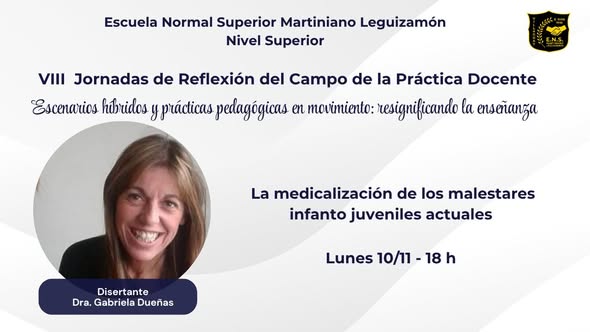 18:15 h – Panel virtual La medicalización de los malestares infanto juveniles actuales, a cargo de la Dra. Gabriela Dueñas.