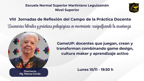 19:30 h- Panel virtual GameUP: docentes que juegan, crean y transforman combinando game design, cultura maker y aprendizaje activo, a cargo de la Mg. Marisa Conde.