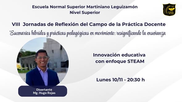 20:30 h- Panel Virtual Innovación educativa con enfoque STEAM, a cargo del Mg. Hugo Rojas