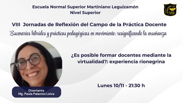 21:30 h – Panel Virtual ¿Es posible formar docentes mediante la virtualidad? Experiencia rionegrina, a cargo de la Mg. Paula Palacios Leiva.